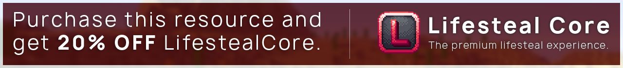 Although this setup comes with a custom Core Lifesteal plugin, it is straightforward. For those who want a more enhanced Lifesteal Experience, you can get LifestealCore for 20% OFF when you buy this setup (instructions to redeem will come with the setup download).