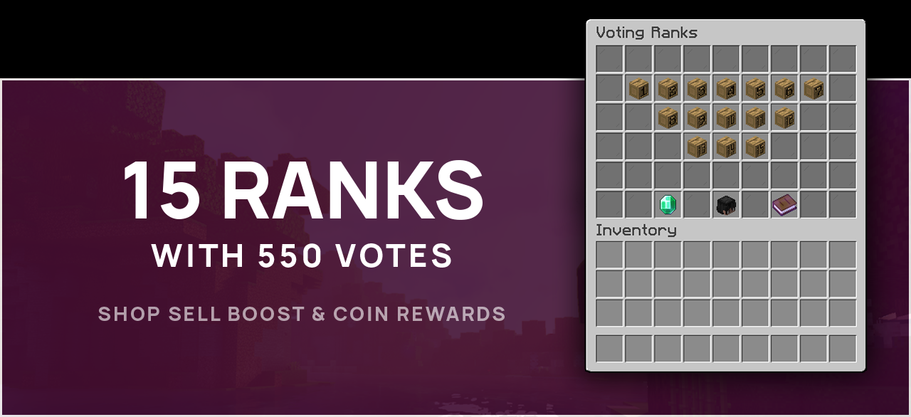 This Vote Ranks configuration is the best out there! It includes 15 Ranks with up to 550 Total Votes! Players can level up after reaching a certain amount of votes. Everything is customizable to your own liking. The config assumes you handle coins with PlayerPoints & your server shop with ShopGUI+ or EconomyShopGUI. If you use a different plugin, you can easily change these values with find & replace.